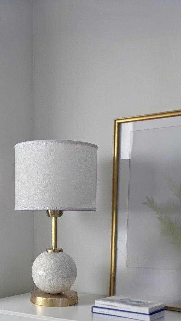 Un diseño elegante y versátil que combina materiales nobles y una estética moderna. Su base esférica de cerámica esmaltada aporta calidez, mientras que la estructura de hierro (disponible en acabado dorado o níquel) suma un toque sofisticado. La pantalla de lienzo completa una pieza ideal para mesas de luz, escritorios o rincones de lectura, brindando una luz suave y envolvente ✨